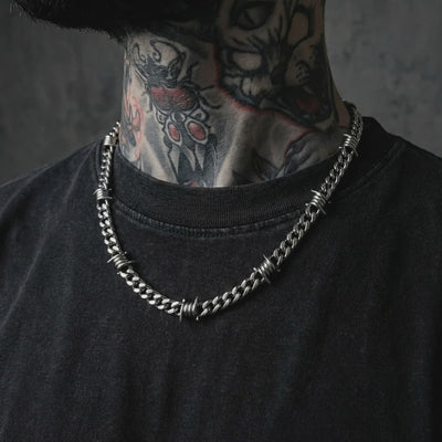 Polished steel meets pure hostility. This set wraps classic Cuban weight in barbed wire detail — brutal, heavy, and built to warn.