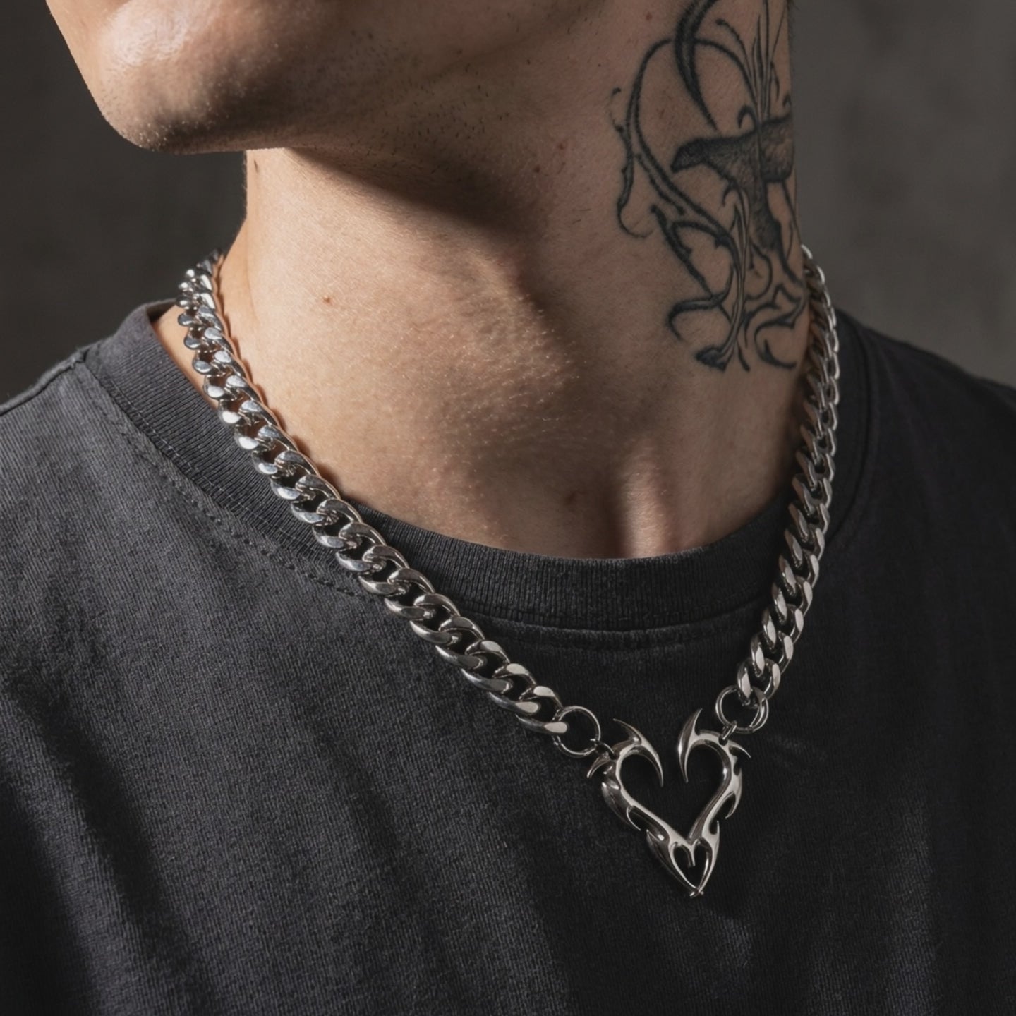 Soft on love? Not here. The Barb Heart Necklace fuses brutal edges with twisted passion—because some hearts were built to bite.