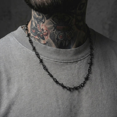 Normies wear safe chains; you wear something that bites back. Black barb wire—because blending in isn’t an option.
