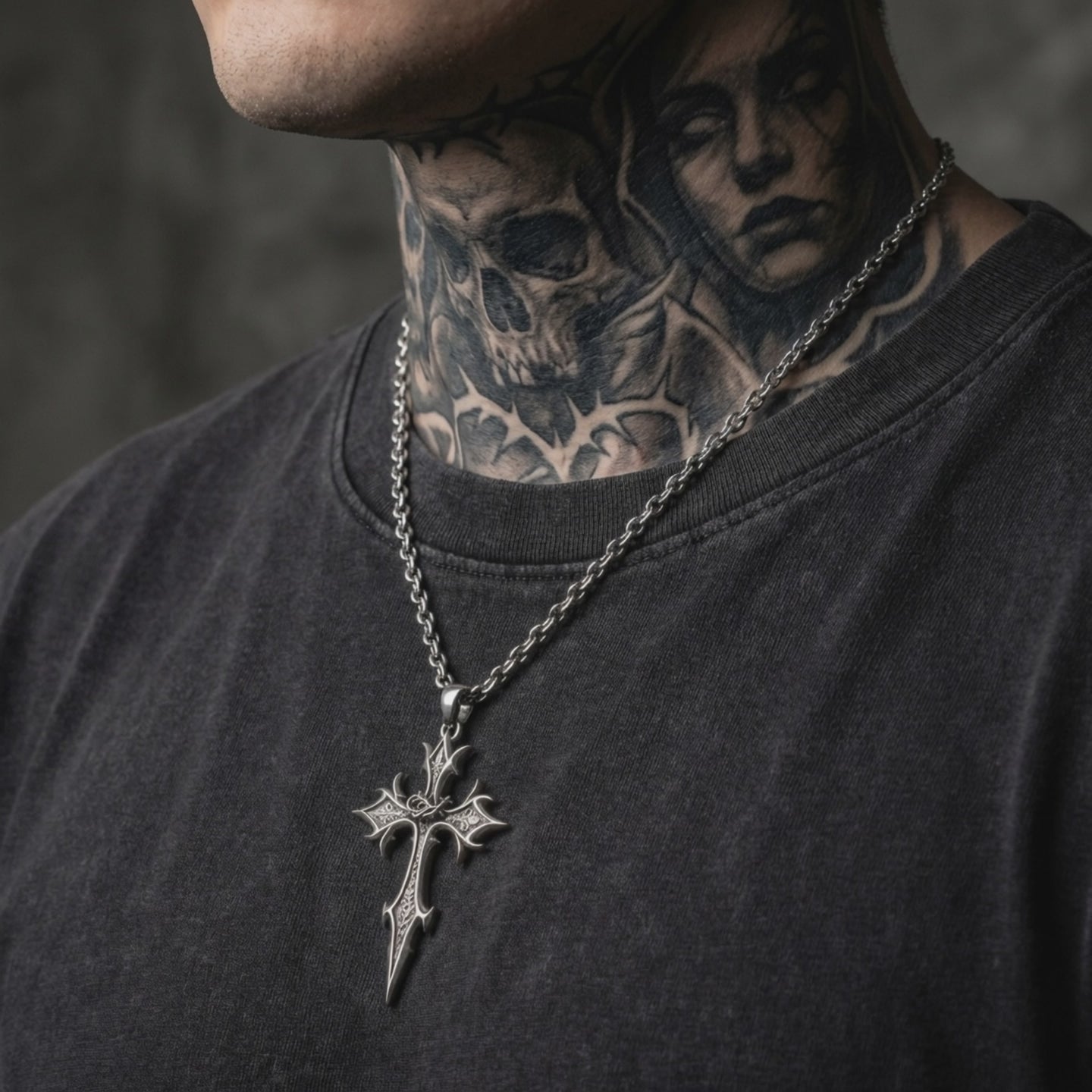 Not just a cross—this is a weapon. The Crucible drips with sharp defiance and carved rebellion.