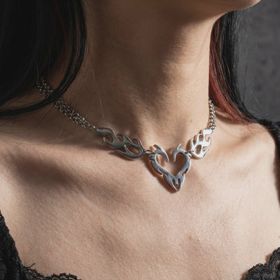 Set the world on fire—literally. The flame-heart centerpiece isn’t here to play nice, and neither are you. Sharp lines, heavy chains, and zero apologies. Belong to nothing. Wear your identity.