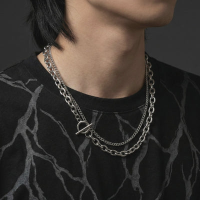 Two chains. One statement. No soft edges—just raw steel wrapped around your neck like you own the damn world.